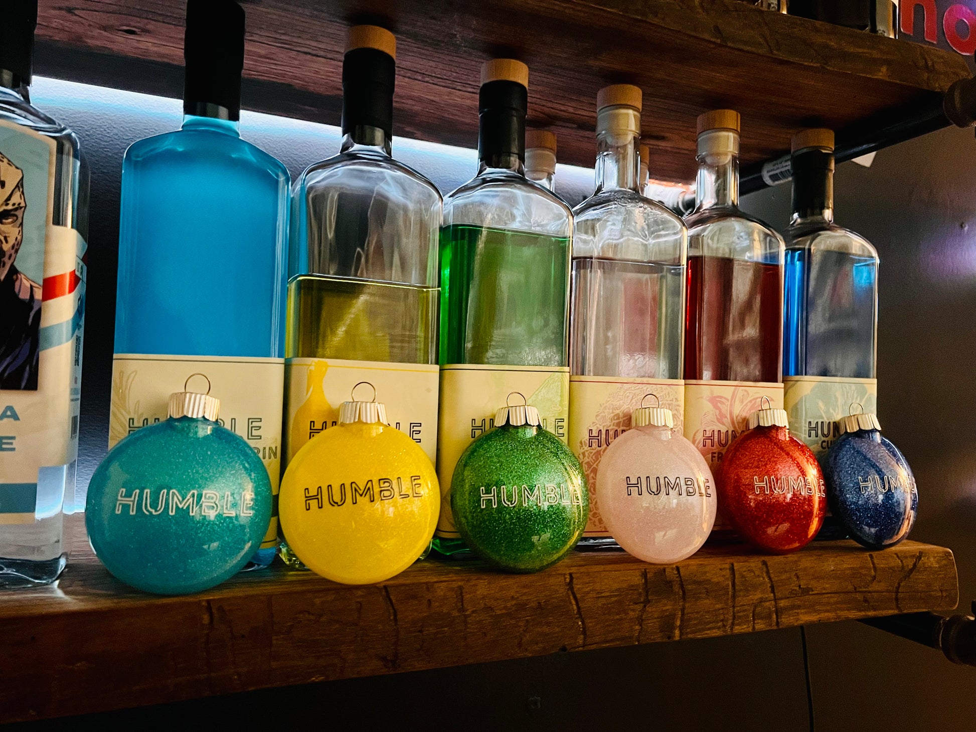 Six (6) boules de Noël assorties de chaque couleur des liqueurs Humble.