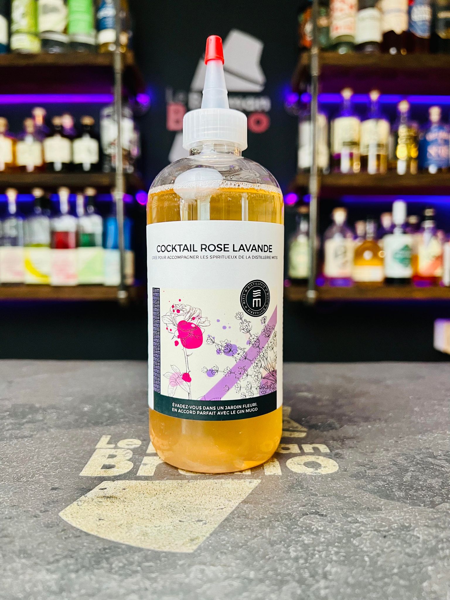 Sirop à cocktail Rose Lavande 340ml. Distillerie Mitis.
